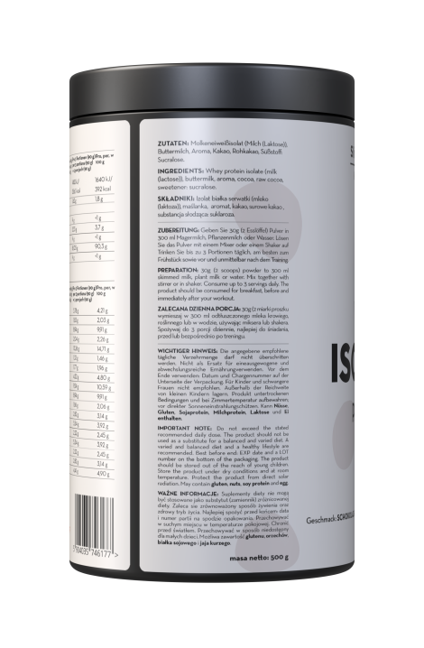 Warto również zwrócić uwagę na fakt, że Whey Isolate Protein o smaku czekoladowym posiada certyfikat CLF- Clean Label Formula, co gwarantuje przejrzysty skład bez zbędnych wypełniaczy. Wybierając Whey Isolate Protein, inwestujesz w ciało, dlatego warto na nie postawić.