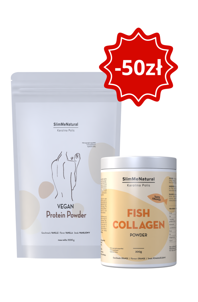 Vegan Protein Powder o smaku waniliowym 1kg + Fish Colagen Powder o smaku Pomarańcza 200g